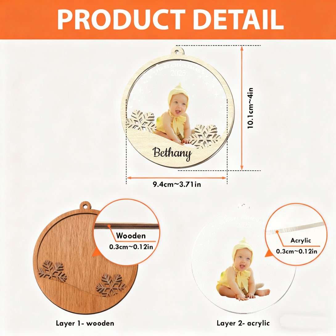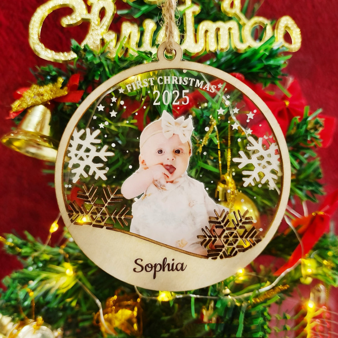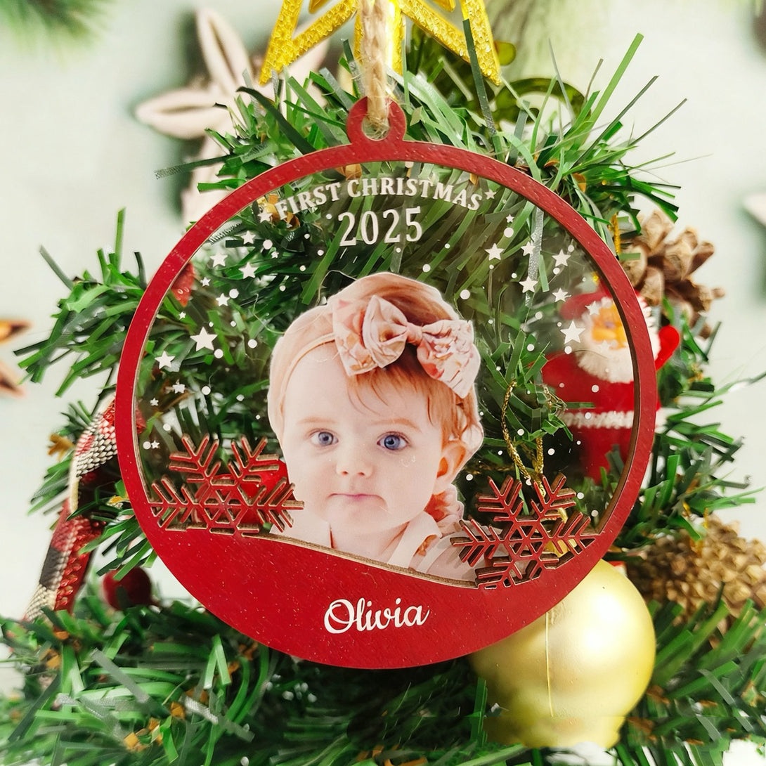 2025 Personalized Wood & Acrylic Christmas Ornamment with Photo + Name