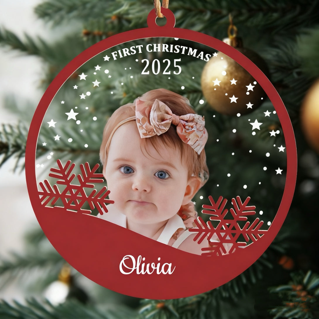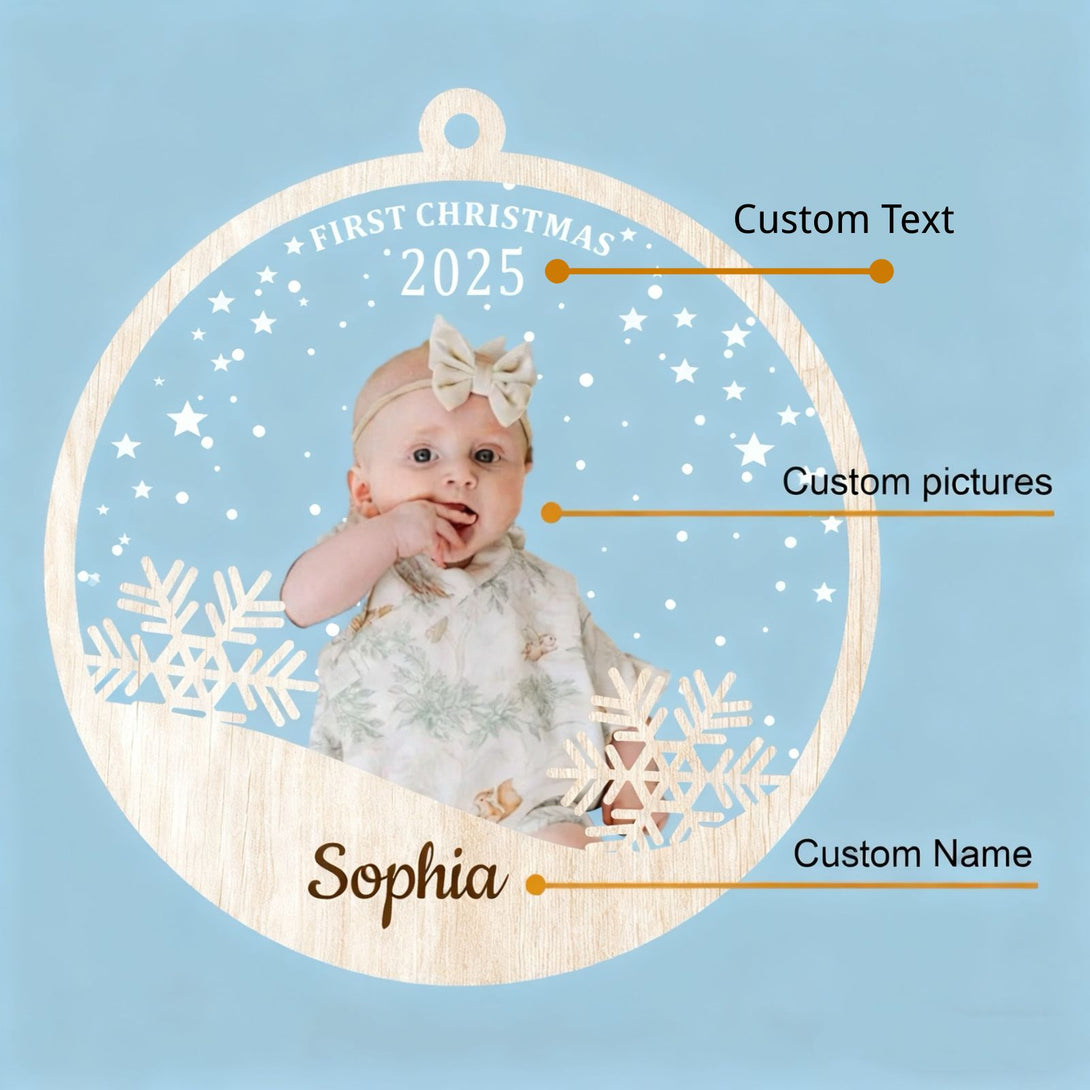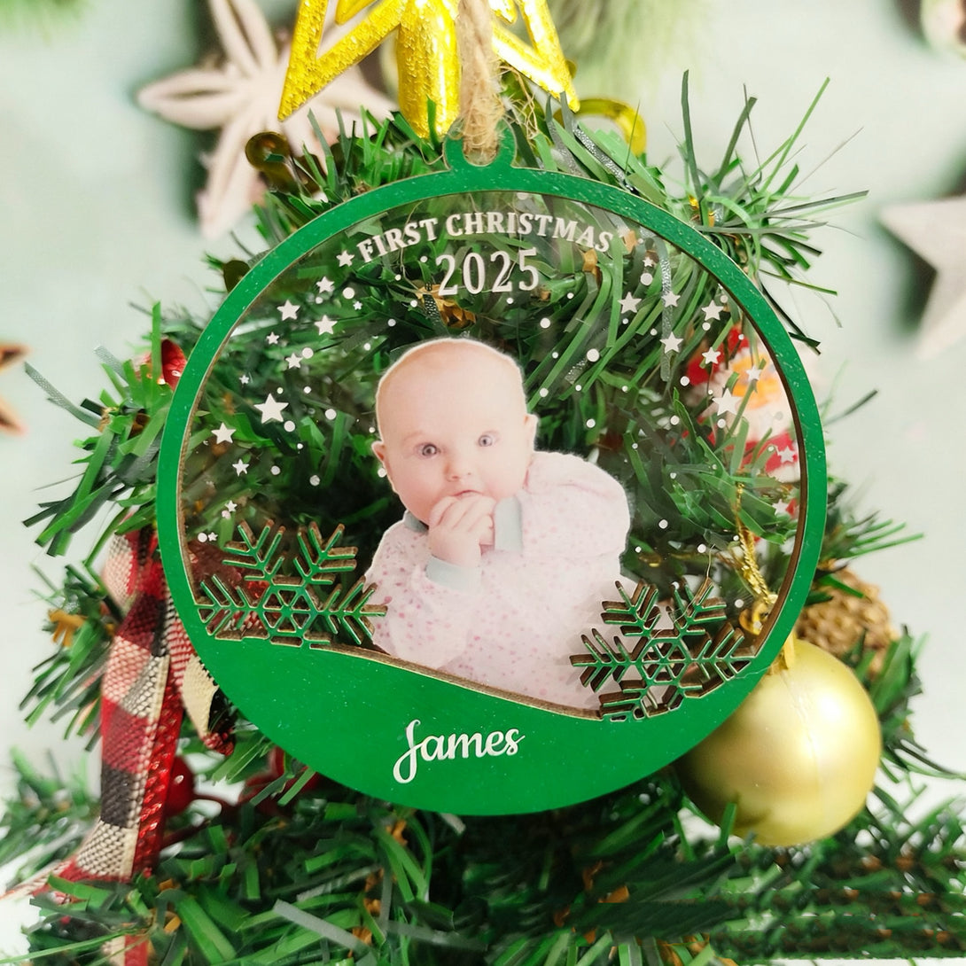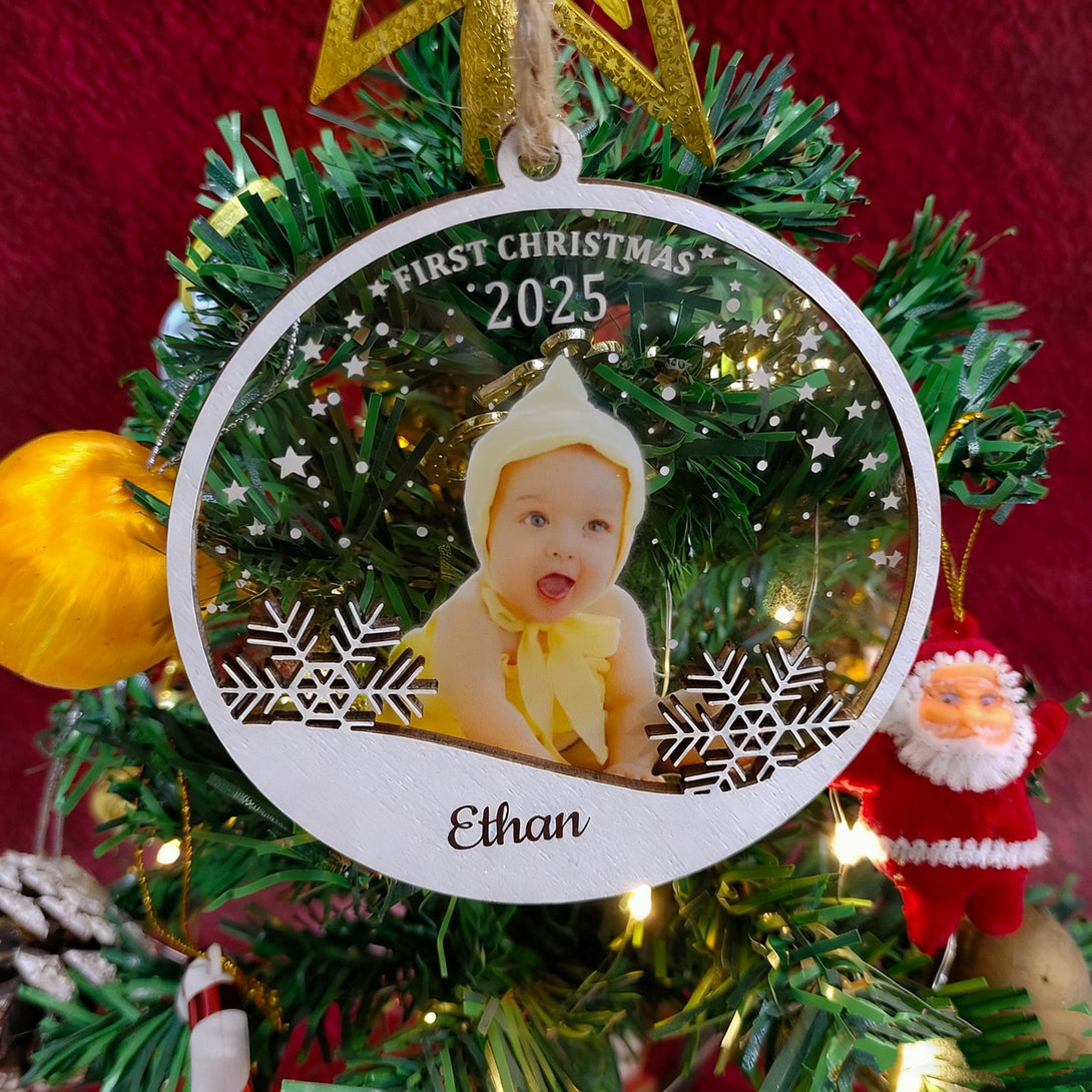 2025 Personalized Wood & Acrylic Christmas Ornamment with Photo + Name