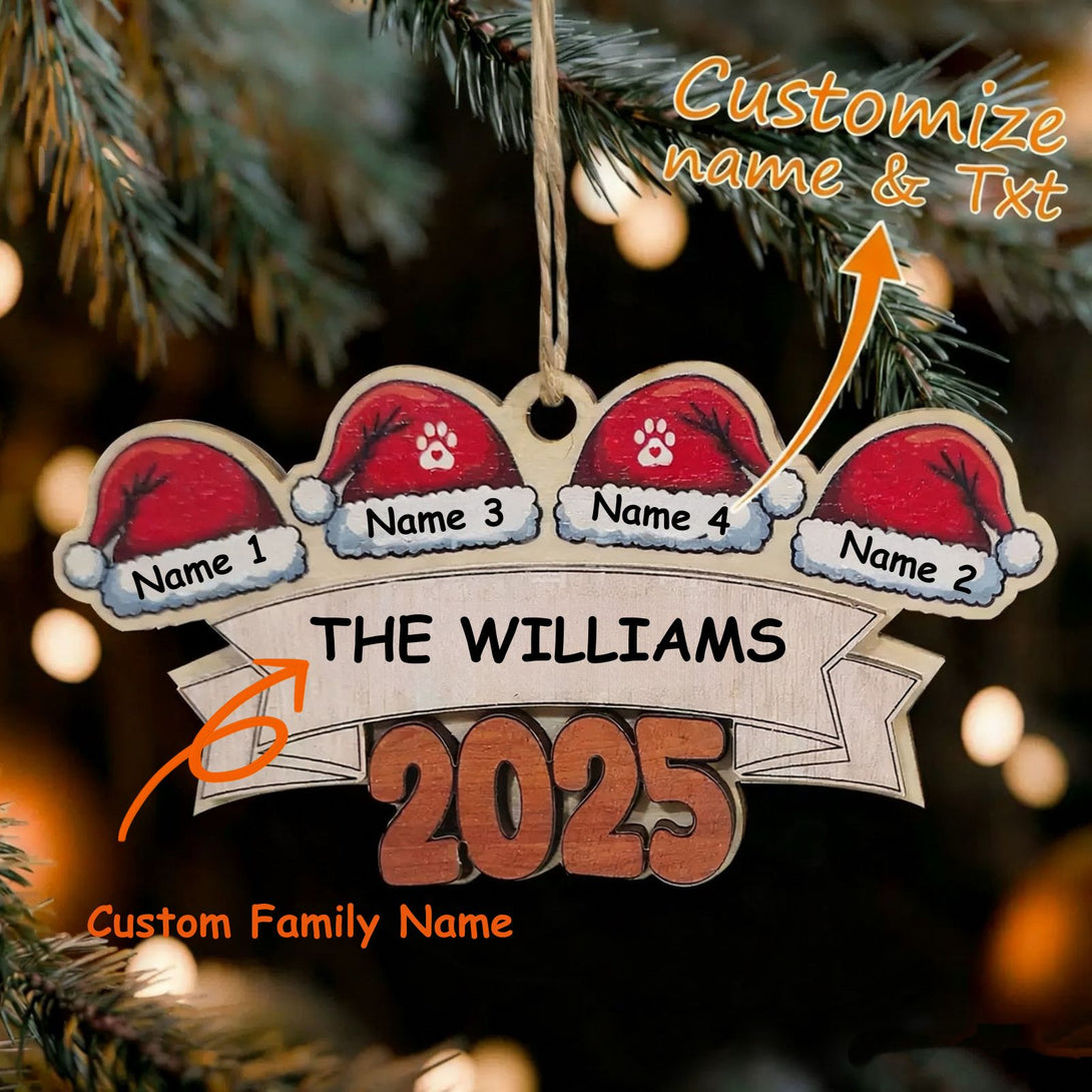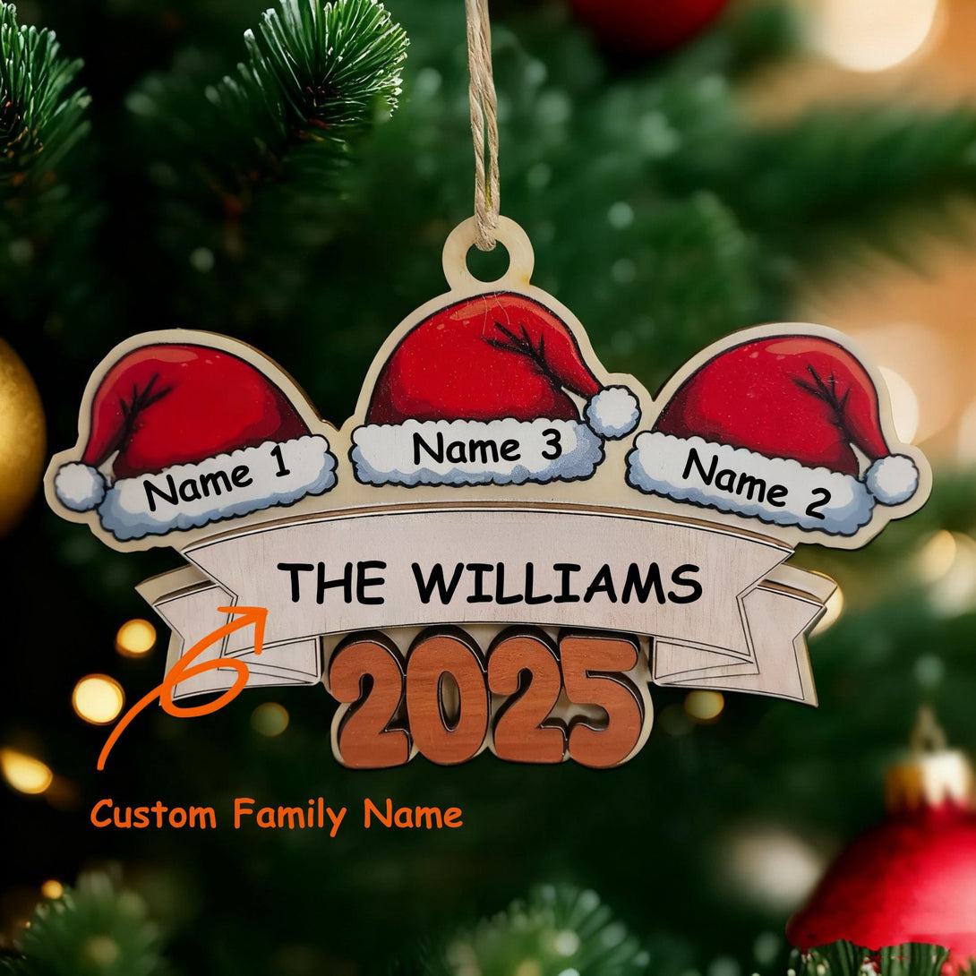 This Christmas ornament is incredibly thoughtful! Crafted from wood, it boasts a lovely, natural texture. The ability to customize it with family names means each member gets their own special "name hat." You can even add your family surname and the year, capturing your unique family memories for the holiday season.