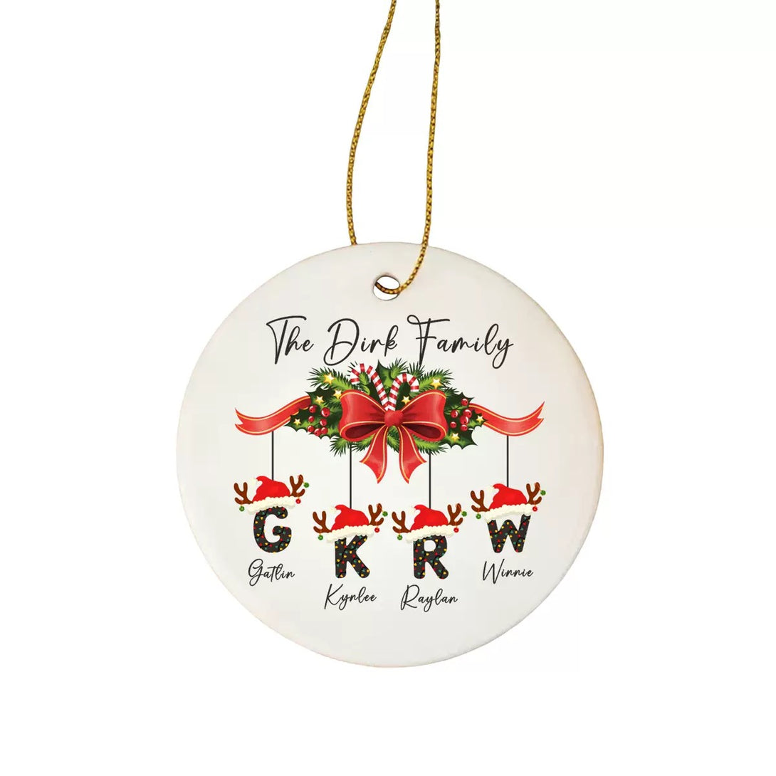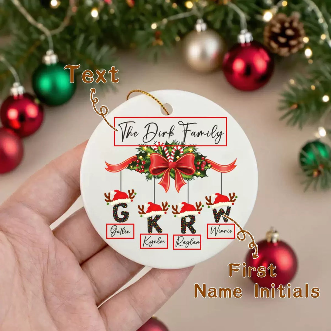 🎅 Festive & Fun Design: Each family member's initial letter is playfully topped with a cute, mini Santa hat, adding a joyful touch.